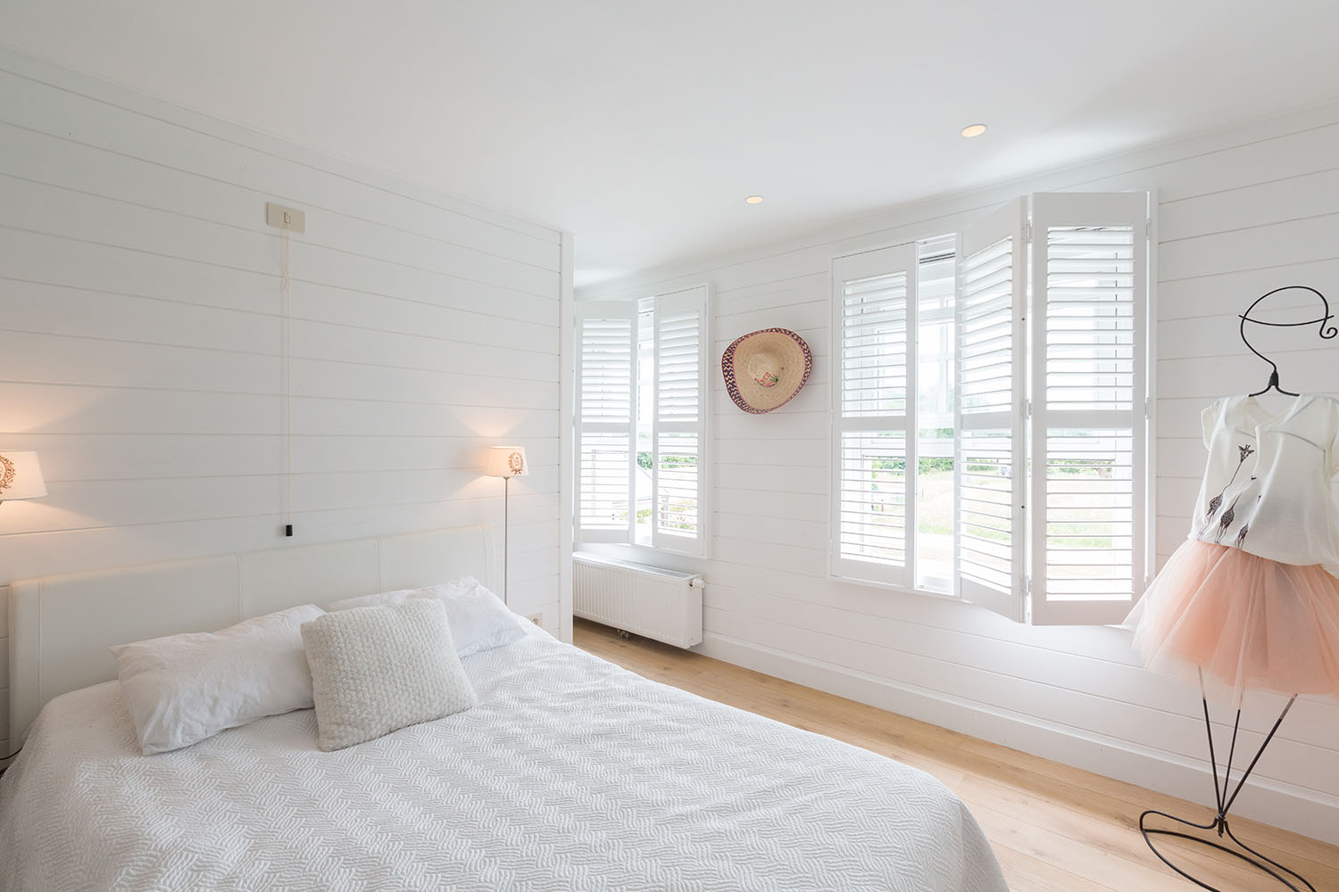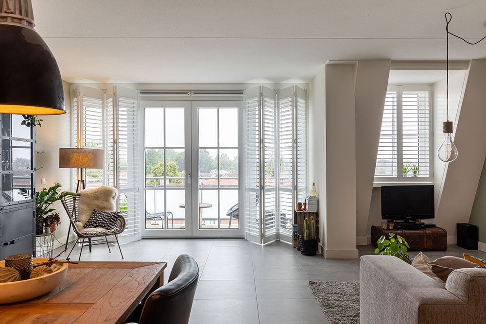 Tijdens de zomer zijn we natuurlijk ook veel in de tuin te vinden. Heb je dubbele tuindeuren of een schuifpui? Dat is natuurlijk helemaal geweldig tijdens de zomermaanden! Shutters zijn de ideale raamdecoratie voor een schuifpui of openslaande deuren. De shutters kunnen worden opengeklapt middels scharnieren, of ze worden op een railsysteem geplaatst waardoor ze als een harmonica in elkaar gevouwen kunnen worden. Zo kun je eenvoudig blijven genieten van openslaande tuindeuren in de zomer.