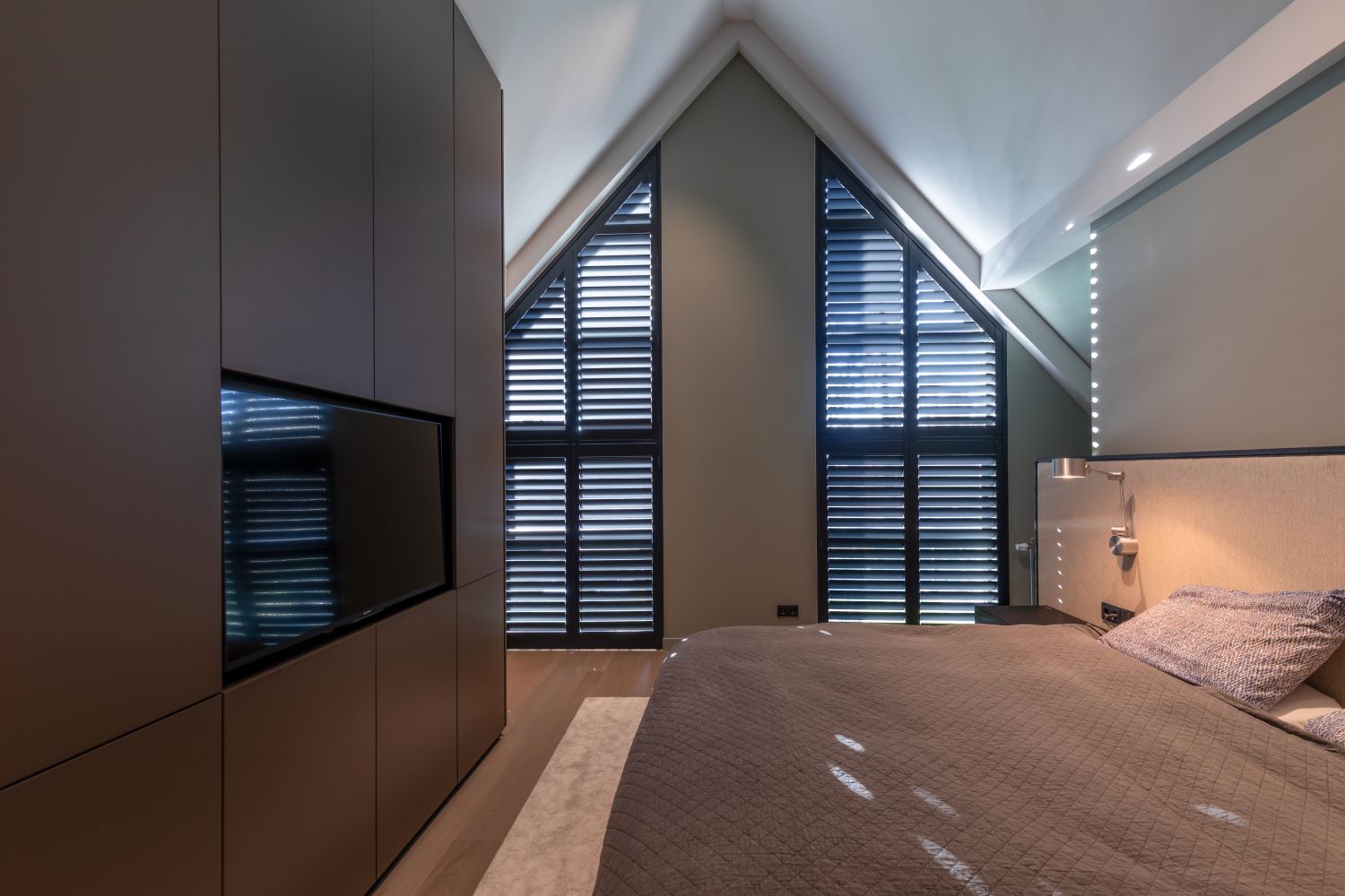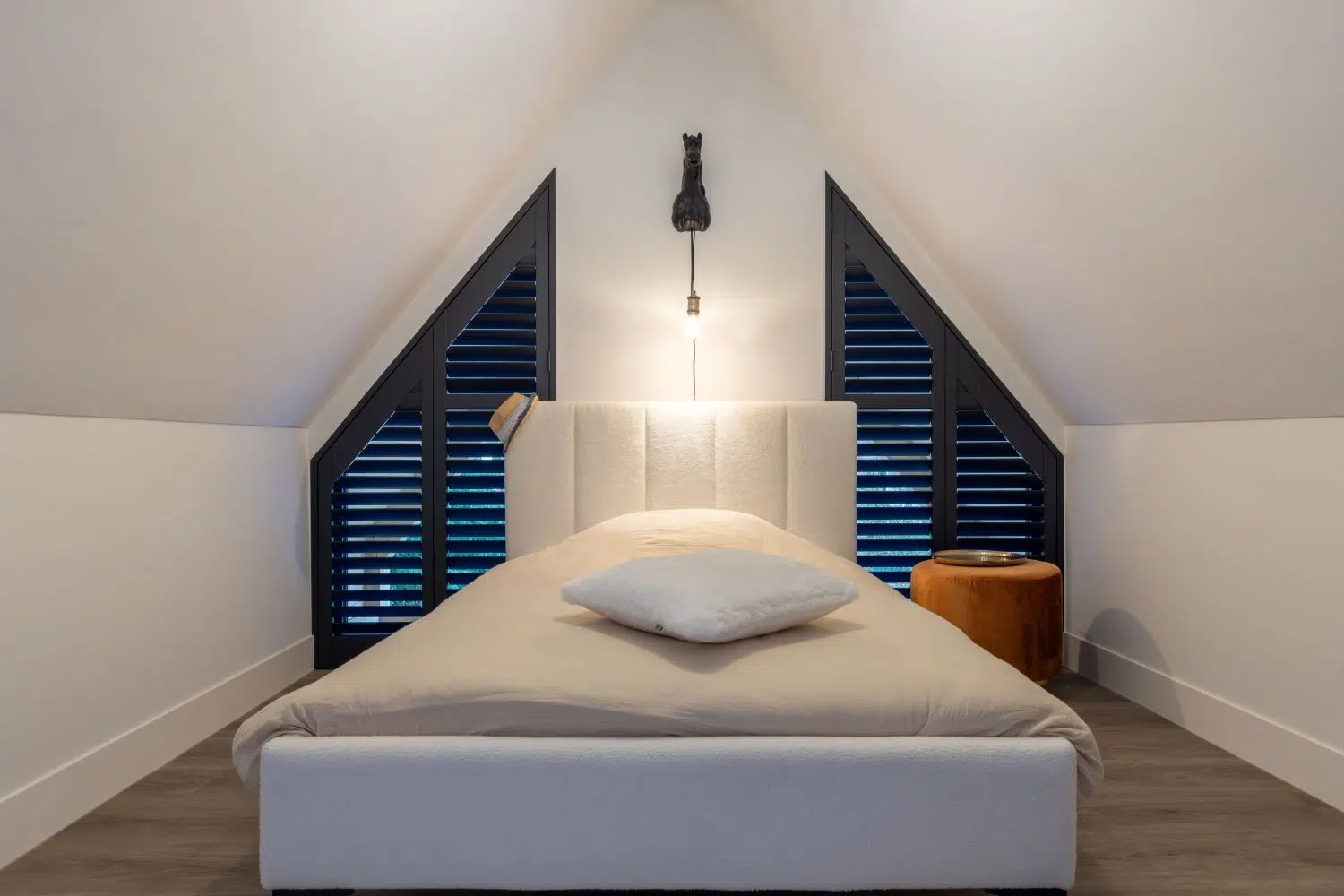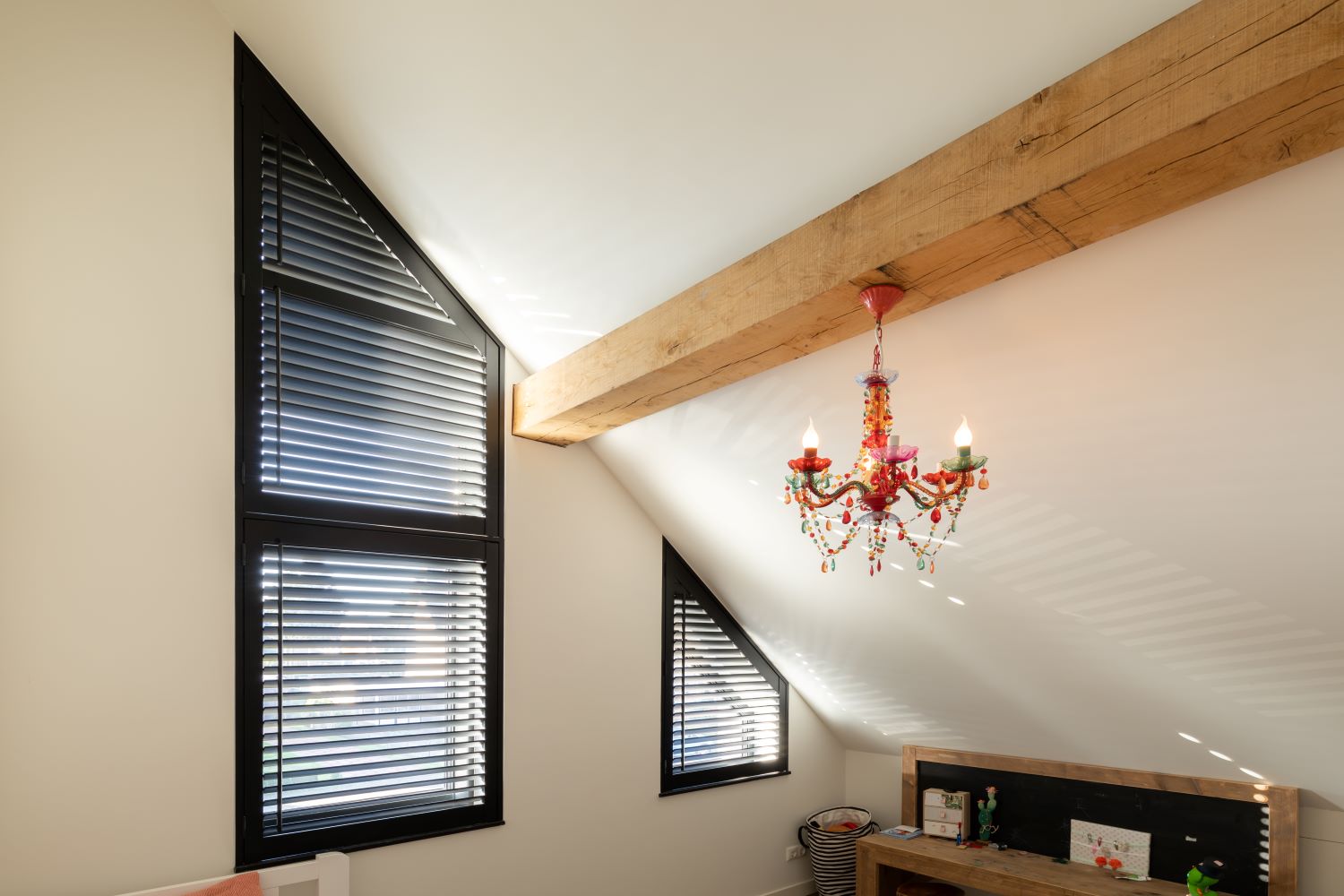 Les shutters sont la solution idéale pour habiller les fenêtres trapézoïdales. Les shutters permettent de créer un intérieur élégant et luxueux et confèrent immédiatement plus de cachet aux fenêtres trapézoïdales. Comme nous fabriquons des shutters sur mesure, ceux-ci s’adaptent parfaitement aux lignes inclinées de la fenêtre. En un seul geste, vous pouvez régler le niveau de luminosité et d’intimité et ainsi profiter pleinement de vos fenêtres trapézoïdales.